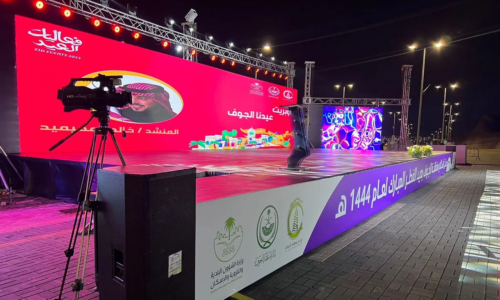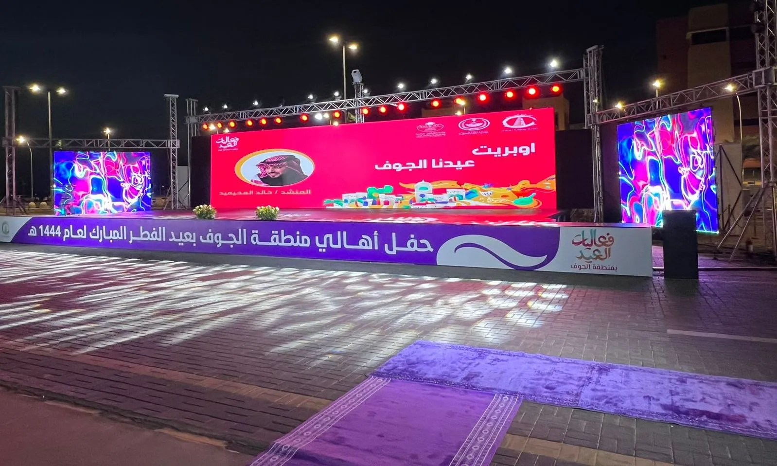 بحضور صاحب السمو الملكي الأمير فيصل بن نواف بن عبدالعزيز آل سعود، أمير منطقة الجوف، أُقيمت احتفالية عيد الفطر المبارك 1444 هـ في الجوف، وتم الإشراف عليها ضمن سجل الخبرات المهنية لفريق العمل. تضمنت الفعالية عروضًا مبهرة جمعت بين المسرح والشاشات العملاقة وأنظمة الإضاءة المتطورة والألعاب النارية، في أجواء تنظيمية راقية تعكس مستوى الخبرة المهنية في تنفيذ الفعاليات الكبرى.
