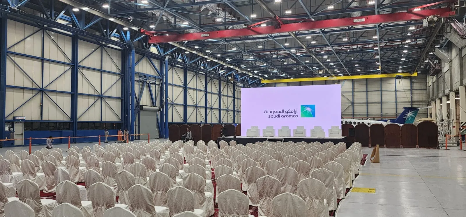 تضمن الحفل مسرحًا مجهزًا بأحدث التقنيات، وشاشة عرض عملاقة، ومقاعد VIP مخصصة لكبار الضيوف، بالإضافة إلى مقاعد مريحة لبقية الحضور.