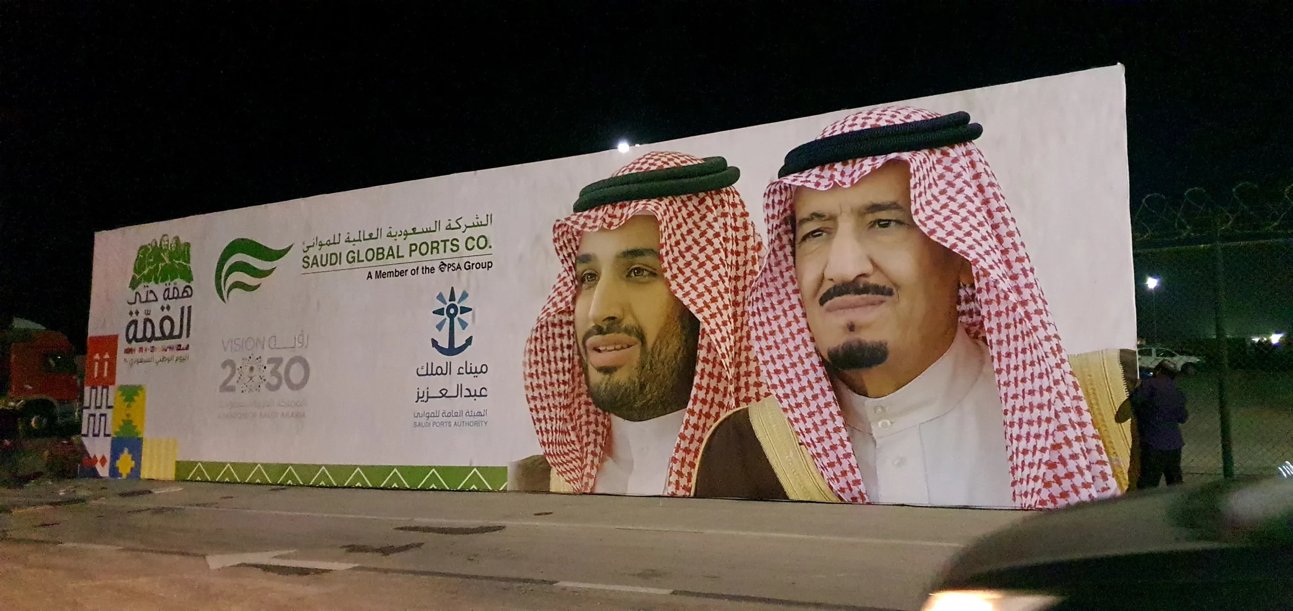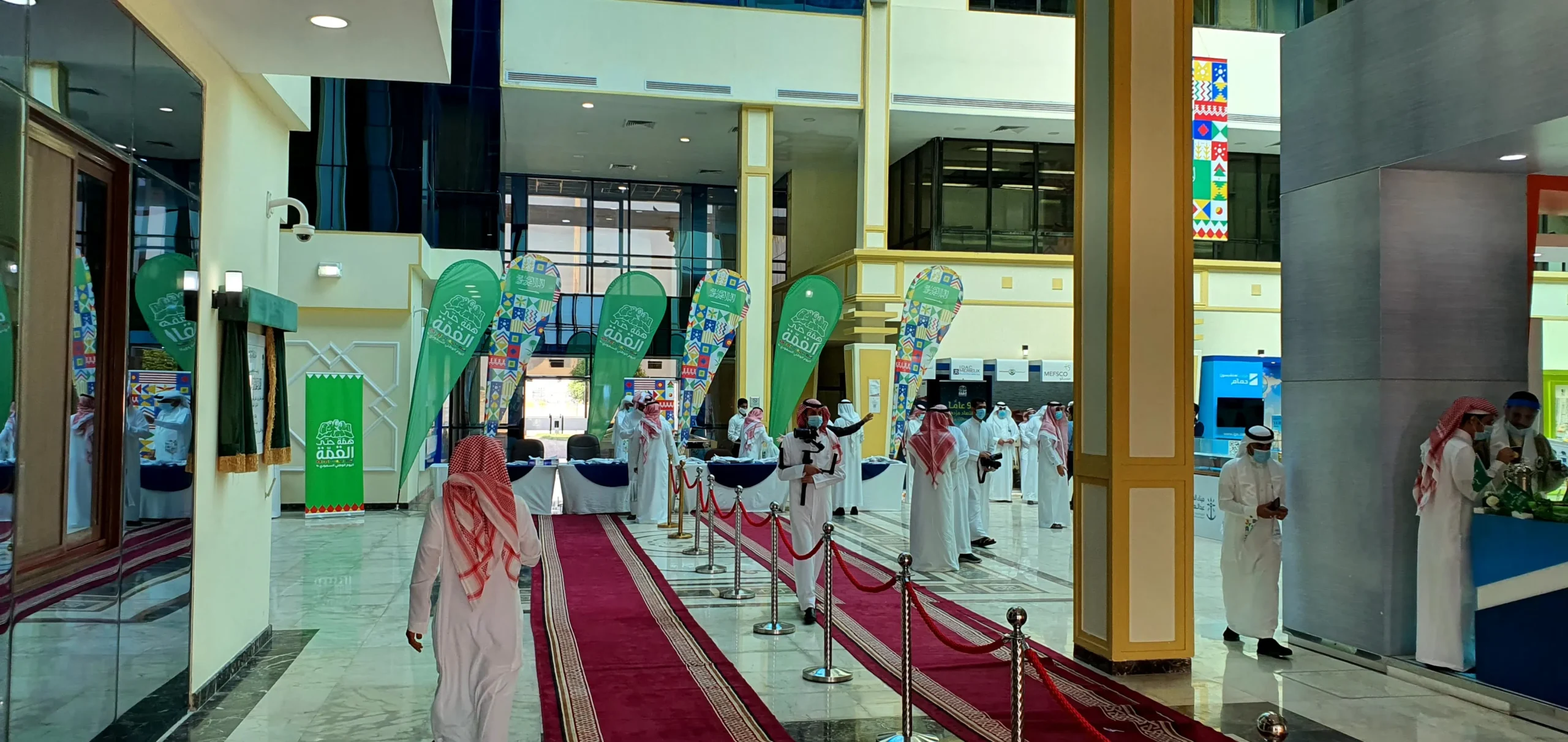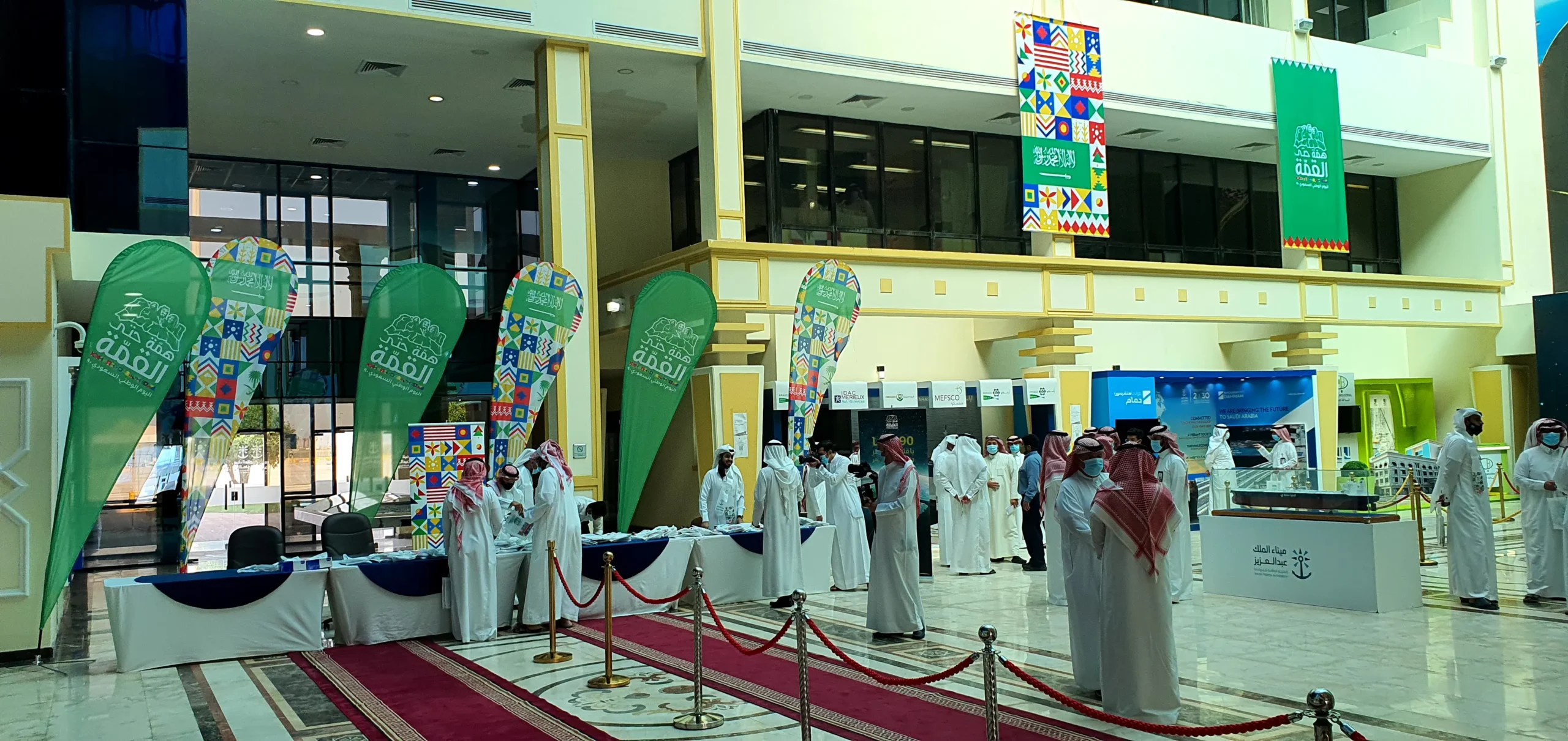 ولتسليط الضوء على الهوية البصرية، وُضعت يافطات ضخمة في محيط الميناء تحمل شعارات اليوم الوطني وصورًا تجسد رموز المملكة، ما ساهم في جذب الزوار وتحفيز مشاركتهم في الفعالية.