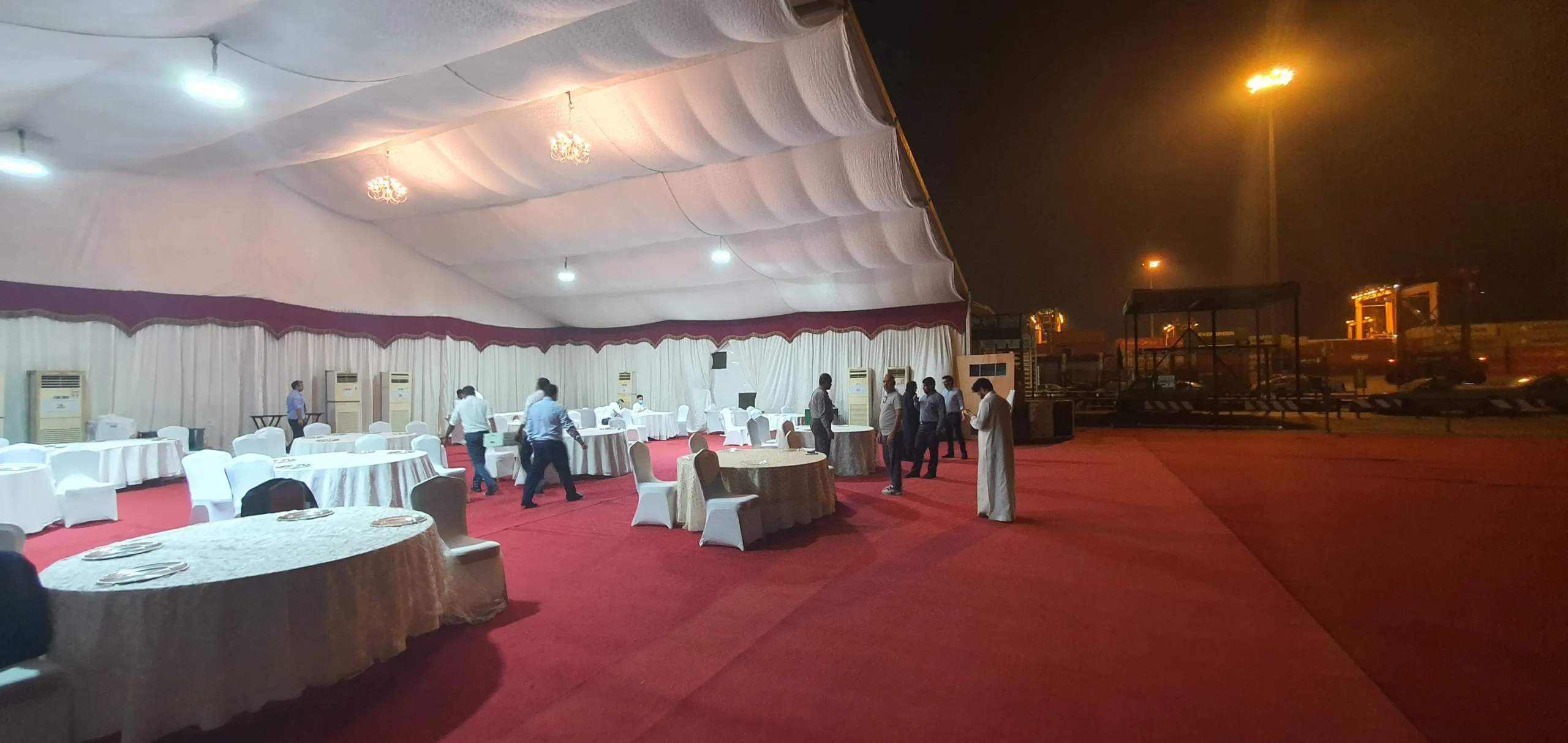 تم الإشراف على فعالية توقيع عقد إدارة وتشغيل محطات ميناء الدمام ضمن سجل الخبرات المهنية لفريق العمل، وهي شراكة استراتيجية بين موانئ، SGP، وPSA. شملت الفعالية تجهيزات فخمة وتنظيمًا احترافيًا يعكس حجم الاستثمار الضخم وامتثالًا لرؤية السعودية 2030.